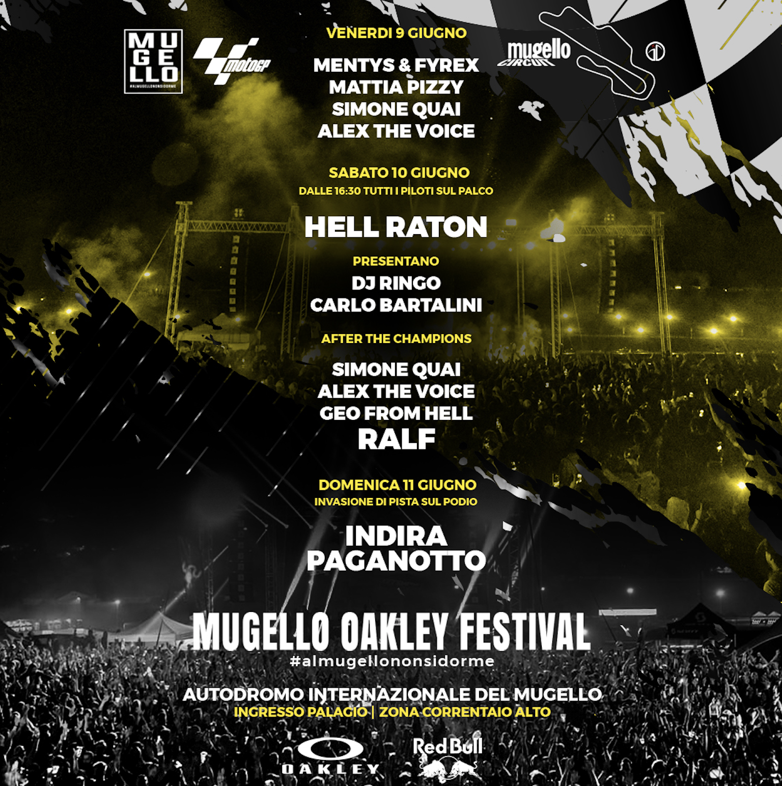 Da sempre l’appuntamento dei tifosi è sul rettilineo di partenza per applaudire i campioni. Quest’anno però la festa sarà davvero speciale perché, suonato l’inno, con il podio ancora profumato di champagne, la tribù della MotoGP inizierà a ballare sulle note della famosa DJ Indira Paganotto. Chi avrebbe mai pensato di poter ballare sul tracciato di un circuito, al Mugello tutto è possibile.