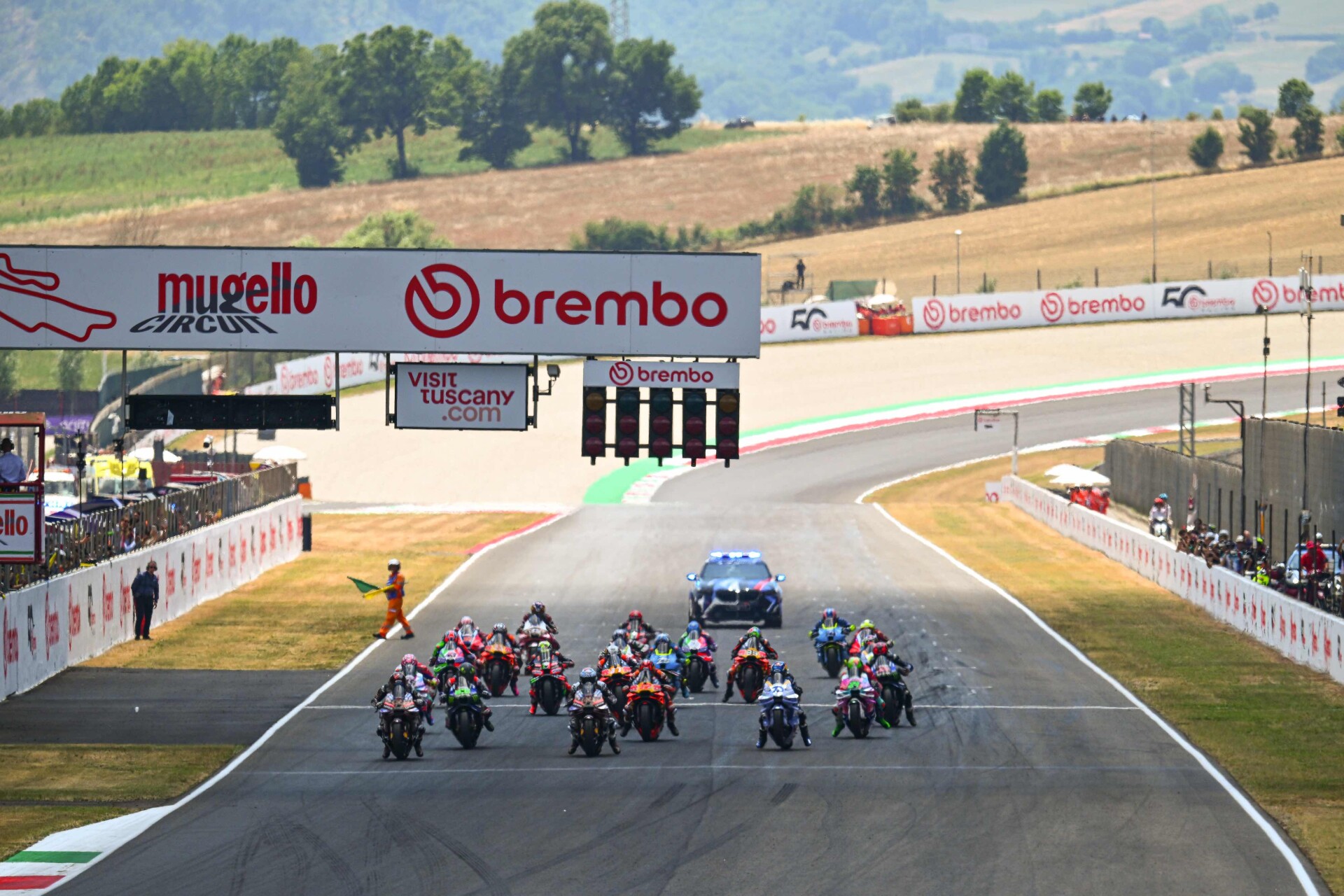 Chiude quarto Bagnaia sotto lo sguardo dei tifosi in delirio ed una vera sfilata di grandi personaggi dello sport e dello spettacolo. Dal Red Carpet di Hollywood attori come Keanu Reeves ed Eric Bana per celebrare il momento della bandiera a scacchi, passando per un Cesare Cremonini sorridente davanti alla livrea del team Vr46 dedicata al suo Tour mentre lungo la pitlane comparivano i volti noti del dj Carl Cox o del campione del mondo Fabio Cannavaro. Presente la politica locale con il Presidente della Regione Toscana Eugenio Giani, la Sindaca di Firenze e della città metropolitana di Firenze Sara Funaro e il Sindaco di Scarperia e San Piero Federico Ignesti, oltre ai consiglieri regionali Fiammetta Capirossi e Cristiano Benucci, il Presidente dell’Unione Montana Comuni del Mugello Tommaso Triberti.
